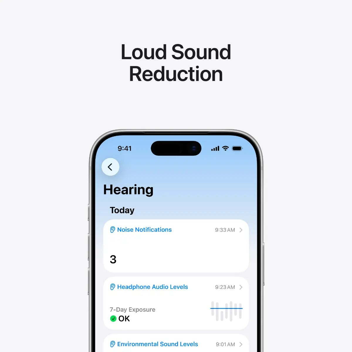 HEARING HEALTH — Loud Sound Reduction automatically reduces harsh noise — like sirens or construction — around you for more comfortable listening.