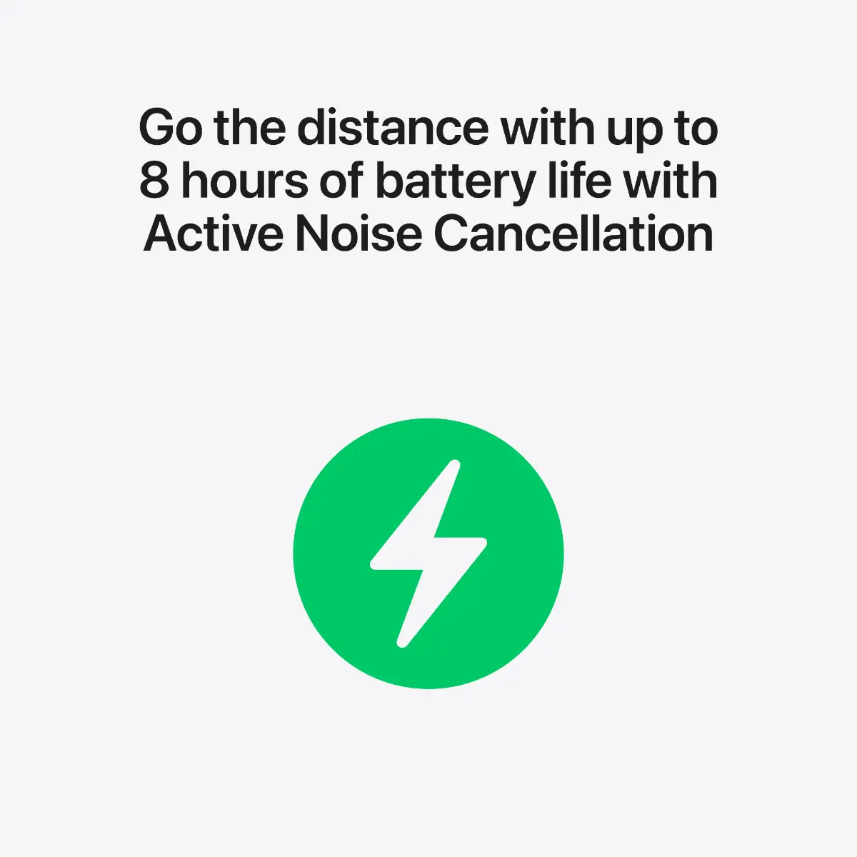EXTENDED BATTERY LIFE — Get up to 8 hours of listening time with Active Noise Cancellation on a single charge.